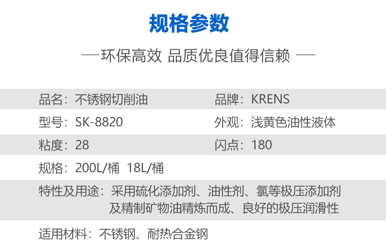 不銹鋼切削油 krens-sk 8820 200L/桶 18L/桶